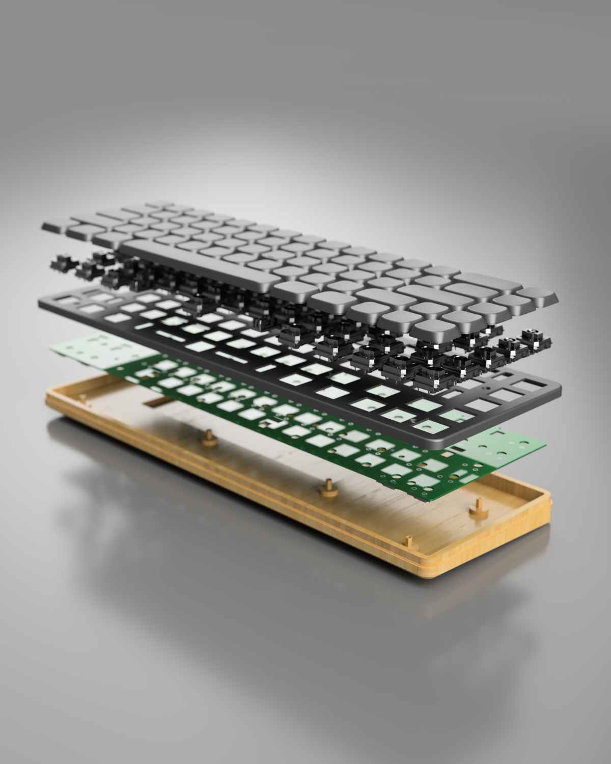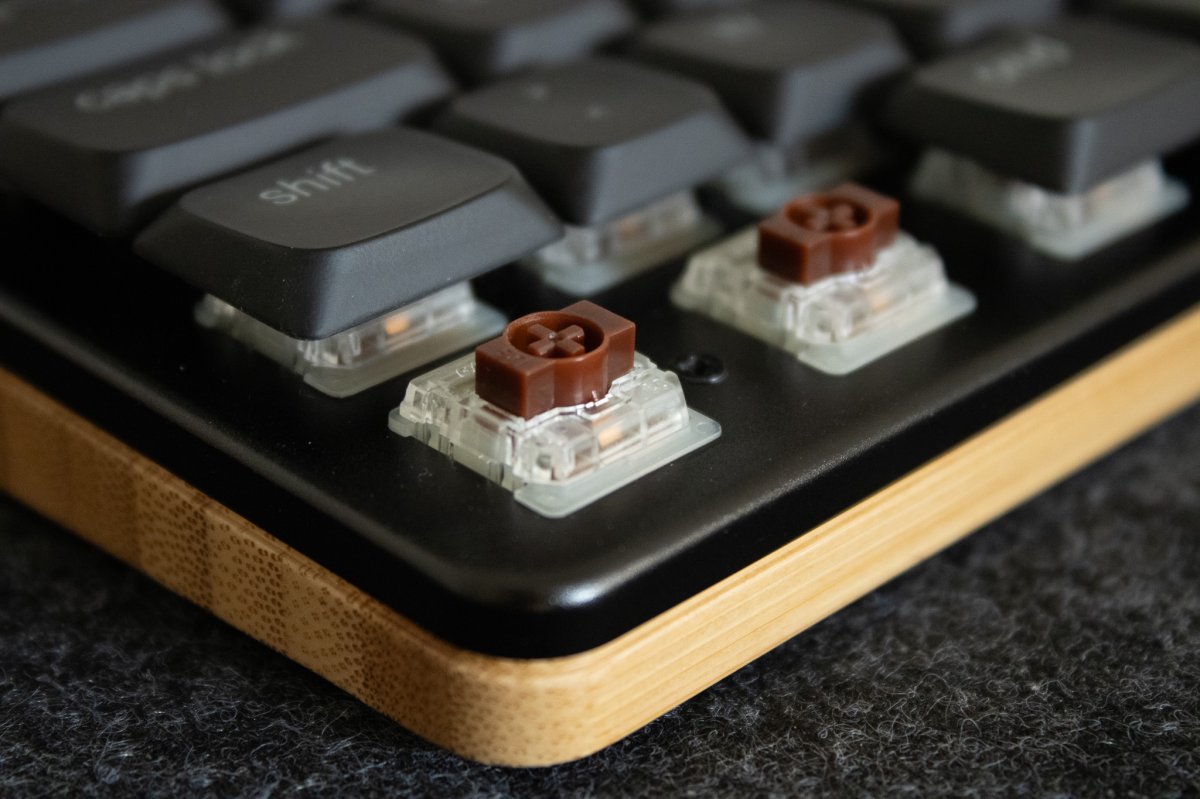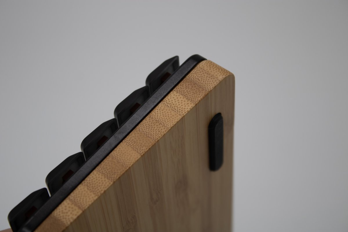Ce design particulièrement original et intégrant des matériaux inhabituels est le résultat d’une étroite collaboration de la marque avec un fabricant spécialisé dans la fabrication soignée d’objets en bambou massif, et un fabricant spécialisé dans les claviers mécaniques modernes.